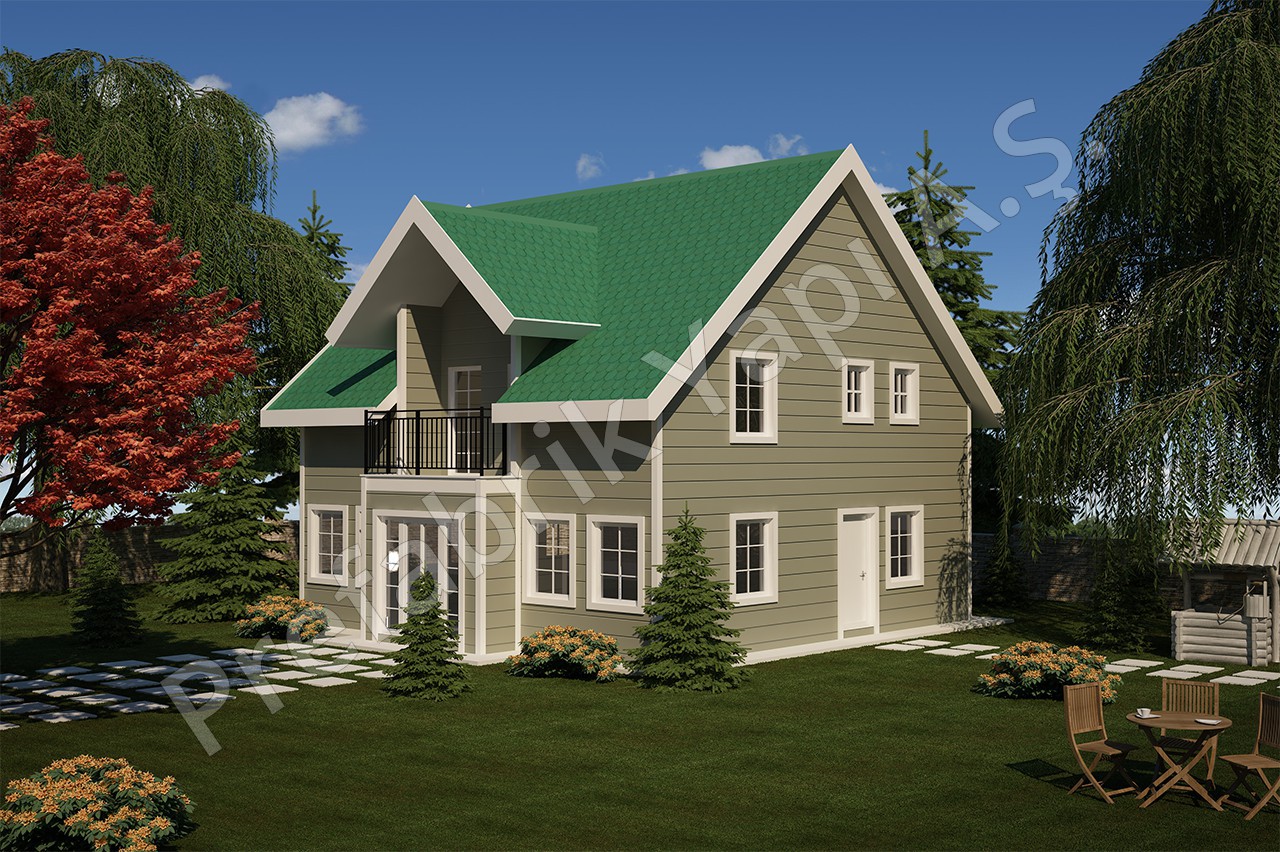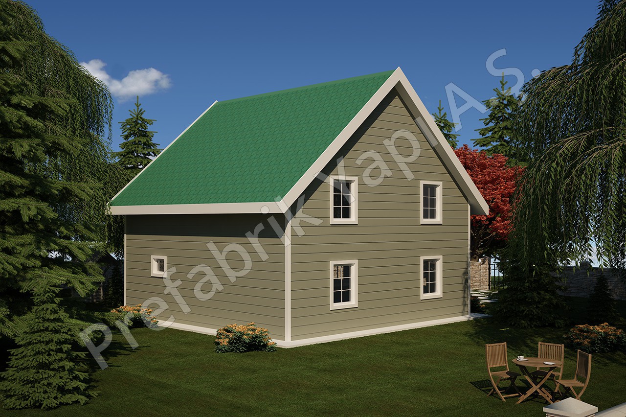 The Zigana duplex prefabricated home is inspired by the charm of traditional highland properties, offering a warm and characterful design combined with modern functionality. With a 3+1 layout and overall dimensions of approximately 8.5 m by 7.7 m, it provides a spacious living environment without requiring a large plot.